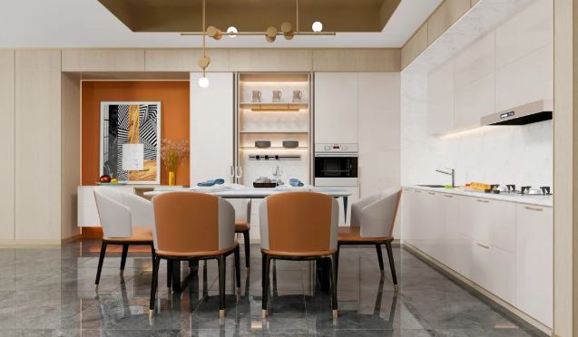 首先,櫥柜的設(shè)計符合人體工程學(xué),盡量減少廚房使用者的操作強度,提高操作效率合理利用每一個廚房空間。