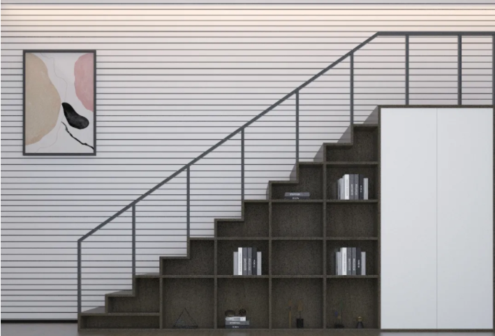 樓梯下方多余的空間,有一個很重要的作用便是收納。若你擁有這樣的一個樓梯,超級nice。我們可以根據(jù)樓梯的層層遞進(jìn),將下方空間和定制收納柜相結(jié)合,既能有效利用空間,又可以擺放大量的雜物,是一個非常不錯的選擇哦。