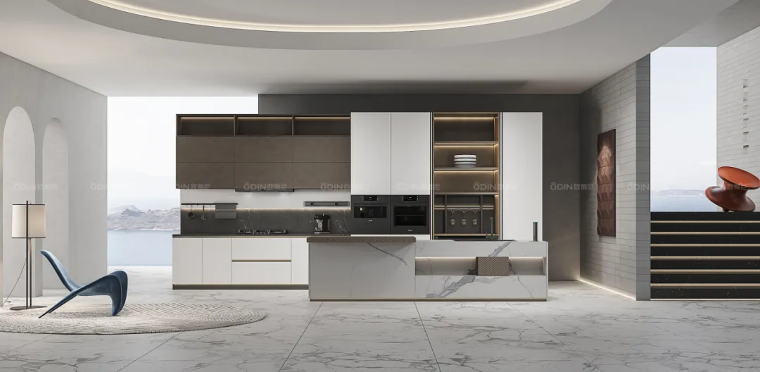 意大利設(shè)計(jì),向來以精致與奢華聞名。意式輕奢廚房,將經(jīng)典與現(xiàn)代巧妙融合,選用高級(jí)材質(zhì)如大理石、金屬與木材,營(yíng)造出低調(diào)奢華的氛圍。巧妙的燈光設(shè)計(jì)與島臺(tái)布局,讓每一次烹飪都成為一場(chǎng)藝術(shù)表演。
