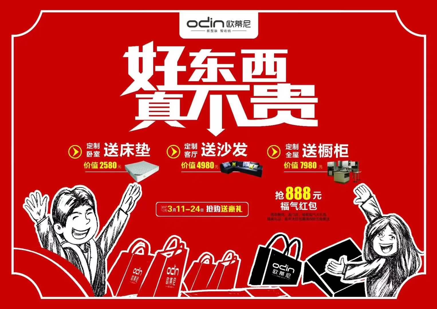 此次3.15活動(dòng),歐蒂尼推出“定全屋送櫥柜、定臥室送床墊、定客廳送沙發(fā)”等優(yōu)惠政策,還有888元福氣紅包和精美進(jìn)店禮品,超值產(chǎn)品吸引了大批業(yè)主咨詢、下單。