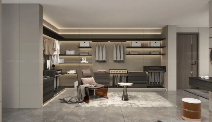 衣帽間設(shè)計(jì)和家居設(shè)計(jì)的理念是一樣的,最重要的是空間規(guī)劃。通過對(duì)空間進(jìn)行組織變化,營造一個(gè)和諧的室內(nèi)環(huán)境,從而達(dá)到視覺功能和心理功能的協(xié)調(diào)。