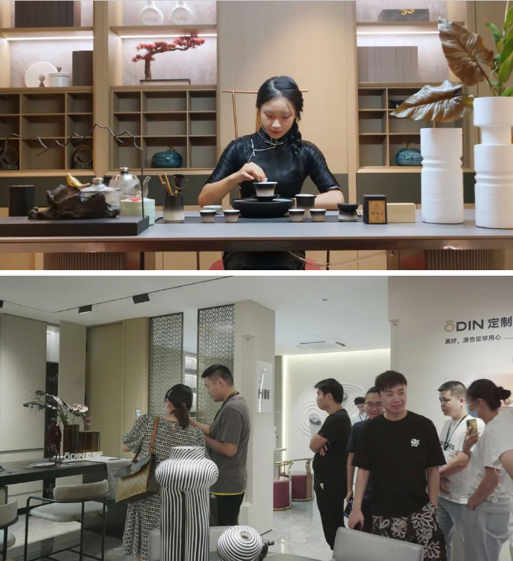 奢耀綻放,工藝革新。本次新品發(fā)布會(huì)上,歐蒂尼總部pro+高端定制新品展廳完美落地呈現(xiàn)。從布局、空間、產(chǎn)品等方面多元?jiǎng)?chuàng)新?;跒榭蛻魟?chuàng)造更多的價(jià)值思考,從用戶對(duì)美好生活需求出發(fā),采用沉浸式與生活美學(xué)藝術(shù)相融合的空間設(shè)計(jì)手法,以產(chǎn)品使用體驗(yàn)為核心,打造出時(shí)尚潮流的多功能產(chǎn)品體驗(yàn)展示區(qū)。