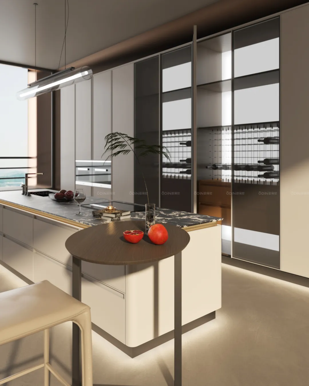 此外,金屬紅酒架的引入,不僅防水防潮、易于清潔,其模塊化設(shè)計(jì)更如搭積木般簡(jiǎn)便安裝,極大地提升了品酒體驗(yàn)。而發(fā)光背板的設(shè)計(jì),則在提供輔助照明的同時(shí),營(yíng)造出一種溫馨而獨(dú)特的氛圍,使廚房成為家中一道亮麗的風(fēng)景線。