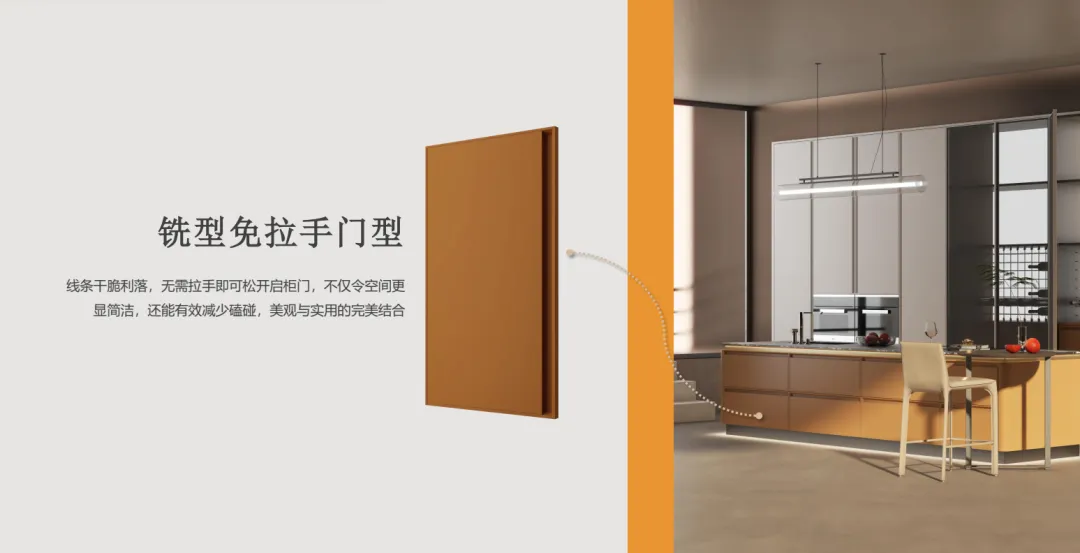 線條干脆利落,無(wú)需拉手即可輕松開(kāi)啟柜門,不僅讓空間更顯簡(jiǎn)潔,還能有效減少磕碰,真正實(shí)現(xiàn)美觀與實(shí)用的雙重價(jià)值。