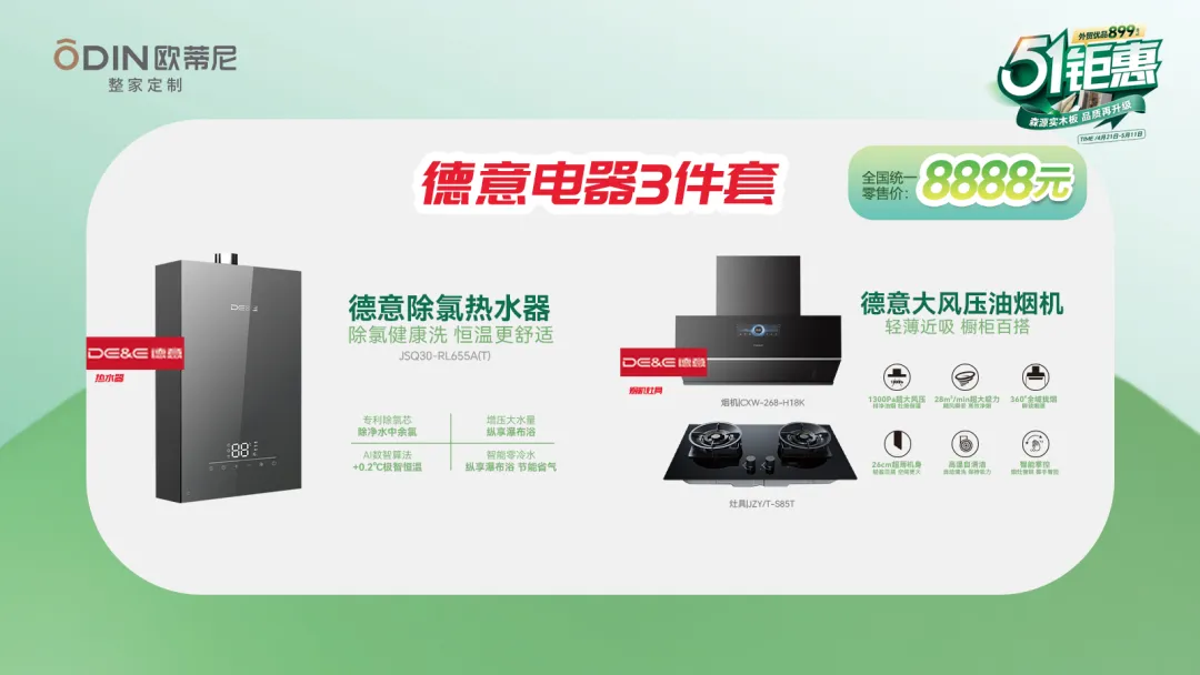 本次活動的核心套餐“19800元定全屋”堪稱行業(yè)性價比標桿。僅需19800元,即可享受20㎡全屋柜體隨心搭配,涵蓋衣柜、鞋柜、書柜、陽臺柜等全屋空間,支持個性化設(shè)計,滿足收納與美學(xué)雙重需求。除外,送 3 米地柜 + 3 米吊柜 + 3 米石英石臺面,采用環(huán)保板材與耐用石材,打造經(jīng)久耐用的烹飪空間,廚房基礎(chǔ)配置一步到位。還有德意三件套電器,抽油煙機、燃氣灶、熱水器三大廚房核心電器直接贈送,真正實現(xiàn)“拎包入住”式省心體驗。