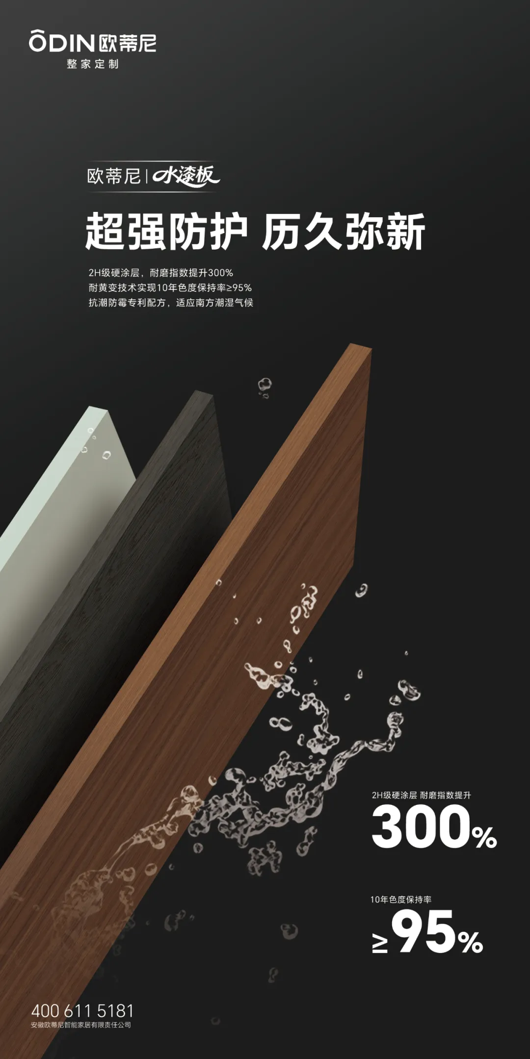 在南方回南天的潮濕里,在北方地暖的炙烤下,歐蒂尼用硬核科技對(duì)抗歲月侵蝕,2H級(jí)硬涂層讓家具表面堅(jiān)如磐石,耐磨指數(shù)飆升300%;獨(dú)創(chuàng)耐黃變技術(shù)鎖定色彩,十年后色度保持率仍≥95%;抗潮防霉專利配方則像給木材穿上“隱形雨衣”,讓霉斑無(wú)處遁形。想象一下:水滴在漆面如露珠般滑落,十年色卡對(duì)比僅現(xiàn)細(xì)微漸變——這便是科技賦予的“凍齡魔法”。
