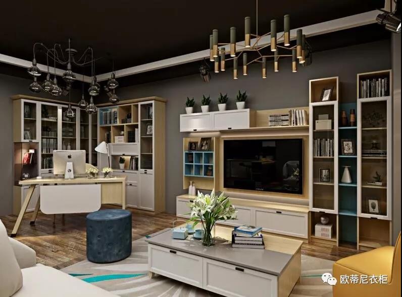 ▲利用轉(zhuǎn)角打造的書房空間,歐蒂尼“思哲·藍”系列大面積孔雀藍的運用,更加的明快與清新,透過陽光散落,一種夏日寧靜的自然氣息撲面而來。
