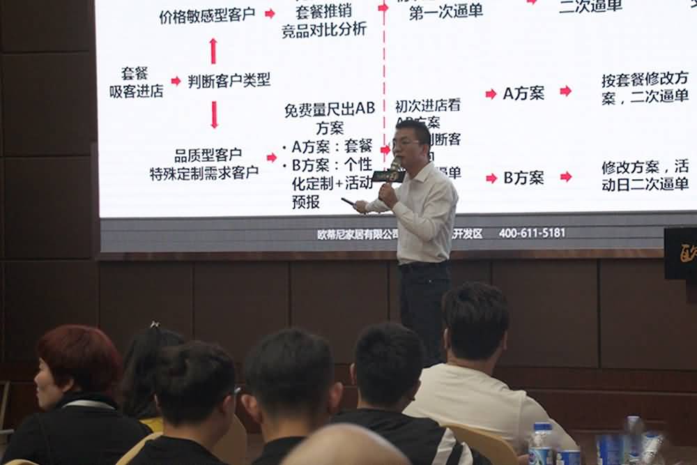 本次特訓(xùn)營(yíng)吸引了歐蒂尼全國(guó)經(jīng)銷(xiāo)商和他們的店面設(shè)計(jì)師、銷(xiāo)售人員、售后服務(wù)人員。他們之間進(jìn)行了溝通,加深了對(duì)歐蒂尼品牌文化的了解,學(xué)習(xí)了歐蒂尼產(chǎn)品的生產(chǎn)工藝、設(shè)計(jì)理念,演練了店面銷(xiāo)售技巧,介紹了當(dāng)前定制家具市場(chǎng)現(xiàn)狀,培訓(xùn)了歐蒂尼售后服務(wù)流程,他們還參觀了歐蒂尼生產(chǎn)車(chē)間和最新產(chǎn)品展廳。