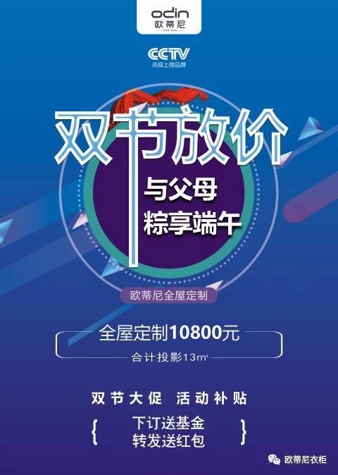 消費者還可免費享受歐蒂尼免費量房、免費設(shè)計、免費送貨安裝的貼心服務(wù),可定制高品質(zhì)高顏值的家居產(chǎn)品。粽享端午,雙節(jié)大促!歐蒂尼已經(jīng)提前吹響了“雙節(jié)放價”的號角,多重好禮,等你來拿,還等什么?